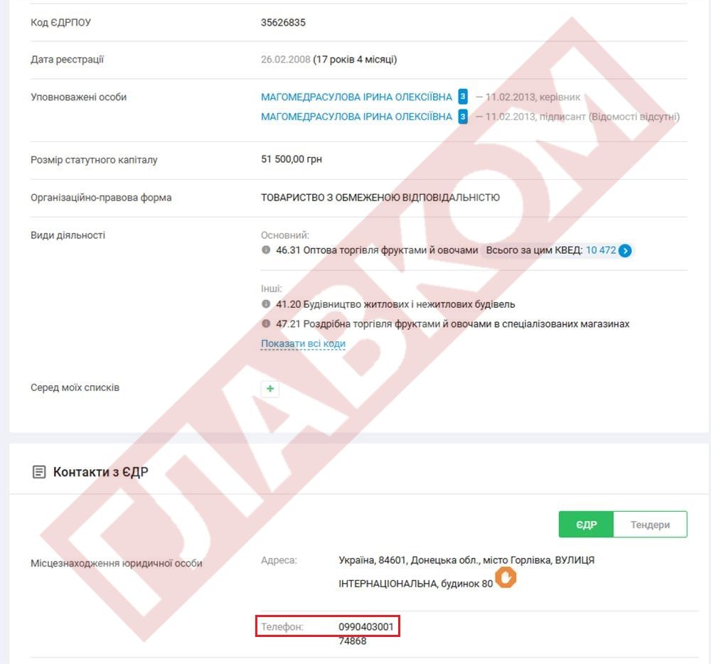 Що цікаво: у застосунку GetContact (генерує контакти з телефонних книжок абонентів), серед іншого, контактний телефон ТОВ «Мультифрут» часом підписаний як «Руслан Расулмагомедов».