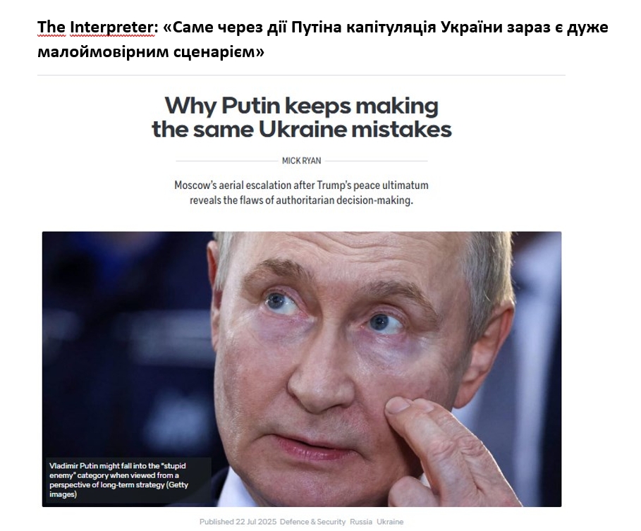«Ця кампанія з очорнення, аж ніяк не є просто відволіканням уваги, вона відображає інформаційну стратегію Кремля «випаленої землі» та зростаючу ворожість до самого Трампа, який колись був улюбленою фігурою московської пропаганди. Західні аналітики відкрито називають війну Путіна катастрофічною помилкою. Майкл Кіммедж з Католицького університету Америки заявив Washington Post, що це була «фанатична» кампанія, що коренилася в люті через розворот України на Захід», – йдеться у матеріалі.