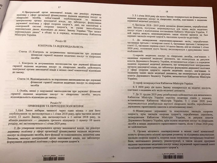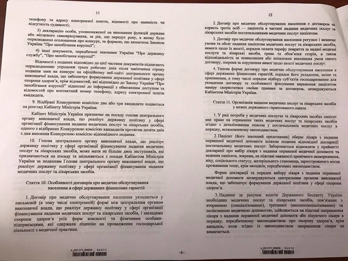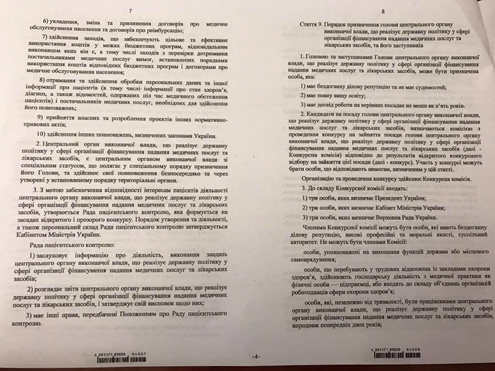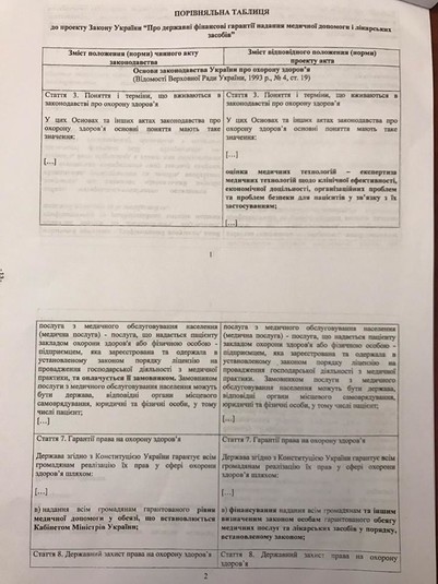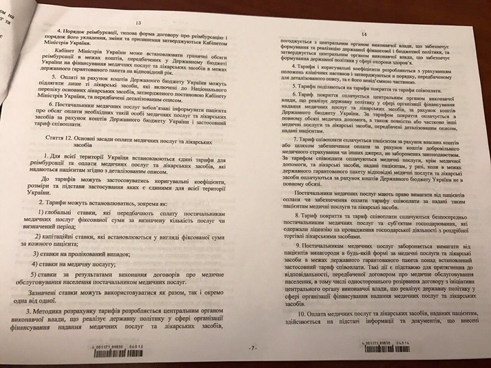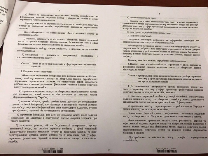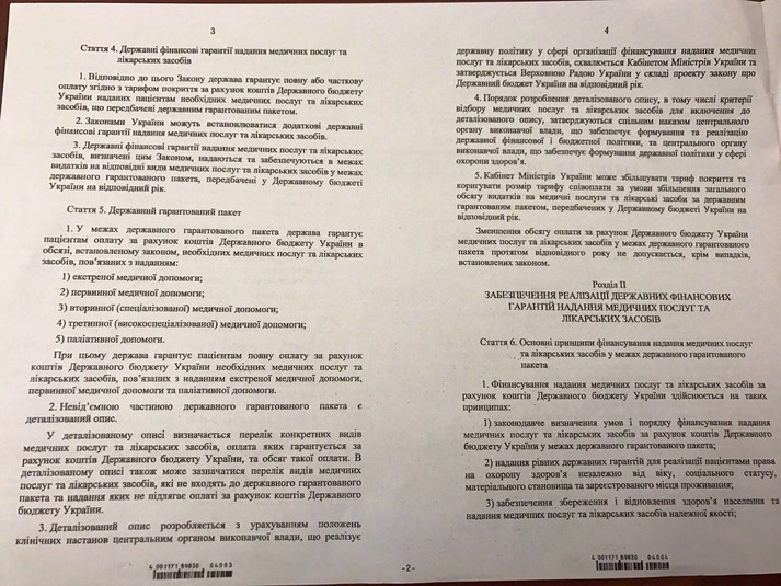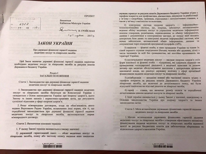 Останній варіант проекту закону «Про державні фінансові гарантії надання медичних послуг та лікарських засобів», що був розданий депутатам сьогодні, 6 червня