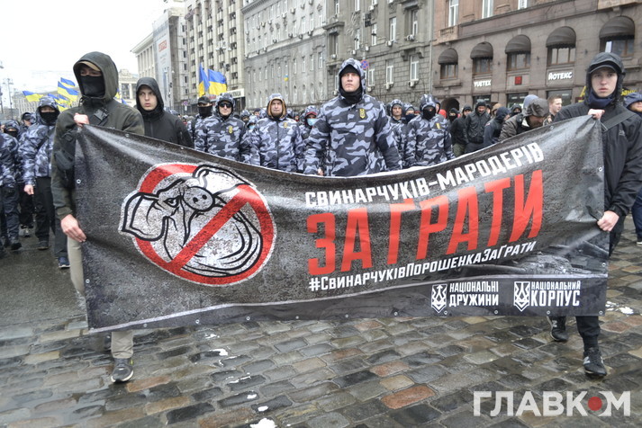 «Посади Свинарчуків сьогодні, або завтра сидітимеш сам», - звертається Білецький до президента, після чого закликає учасників мітингу формувати колону і прямувати до Адміністрації президента.