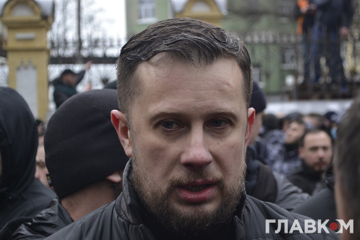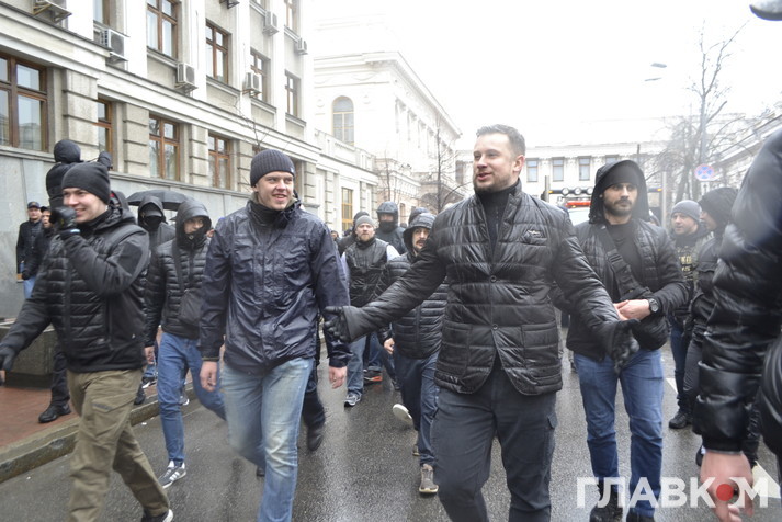 Неподалік від сцени з’являється лідер «Національного корпусу», нардеп Андрій Білецький.