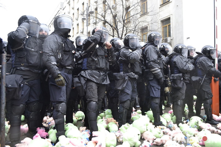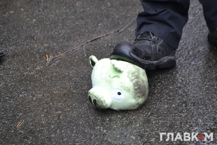 Єдиними, хто «постраждав» від іграшкових свиней, стали охоронці Нацбанку - частина протестувальників вирішила влаштувати і їм «феєрверк»...