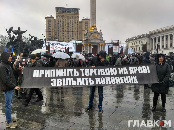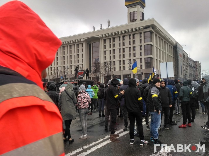 Початок акції протесту заплановано на 12:00, але вже об 11:30 на Хрещатик підтягуються організовані групи мітингувальників. Частина з них вщент заповнює підземний перехід під Майданом Незалежності, оскільки на вулиці дощить.