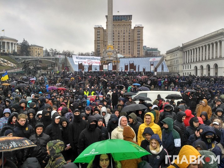 Попри негоду, підтримати протести щодо розкрадань в оборонці прийши близько десяти тисяч людей (за словами речника «Нацкорпусу» Олександра Алфьорова).