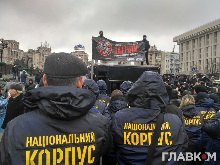 Хоч організатори акції і запевняли, що захід відбудеться без політичної агітації, тисячі курток з написами на спині «Національний корпус» роблять свою справу і без партійних прапорів.