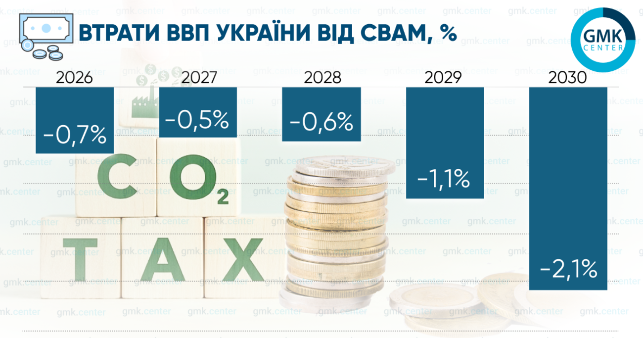 Запроваджуючи нинішній коефіцієнт CBAM, Єврокомісія підрахувала, що втрати України через цей податок складуть лише 0,01% ВВП до 2030 року. В українських експертів – зовсім інші прогнози: за оцінками GMK Center, втрати складуть щонайменше 2,1% ВВП, а за негативного сценарію перевалять за 4%. Причини такого оптимістичного розрахунку Єврокомісії криються в ігноруванні внутрішніх ризиків України (окрім війни, це, наприклад, каскадний ефект проблем металургії на інші галузі, соціальні наслідки тощо) та використанні завищених дефолтних (стандартних) значень викидів.