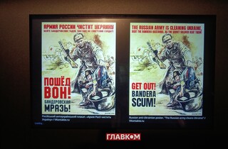 Ще одним артефактом є російські підручники із Харківщини. Музейники помістили їх у ящики з-під снарядів, адже книжки, як і снаряди, символізують «рускій мір». Література є не менш сильною зброєю за вогнепальну, тому як колись радянська влада, так і нинішня російська після захоплення території найперше що роблять, це розповсюджують свою літературу і пресу.