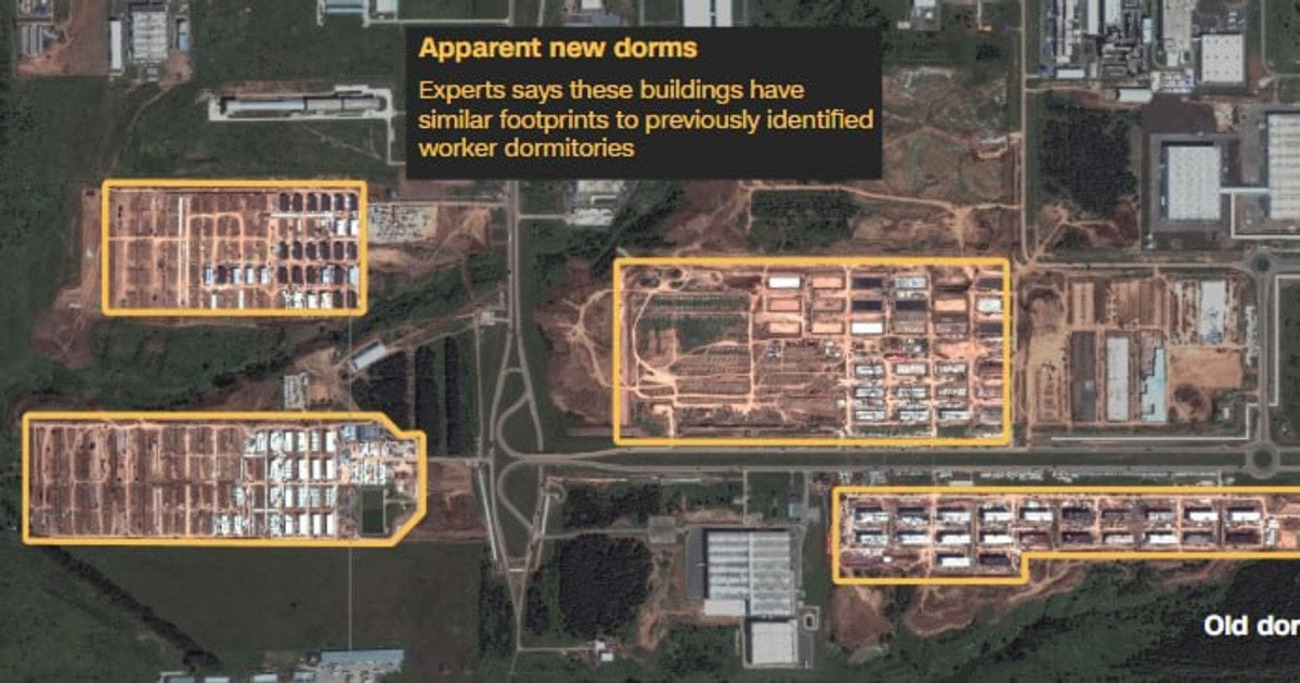 На кадрах видно десятки нових споруд – це не лише виробничі цехи, а й гуртожитки для робітників. Після завершення будівництва там зможуть розмістити до 40 тис. працівників, що дозволить збільшити випуск безпілотників врази.