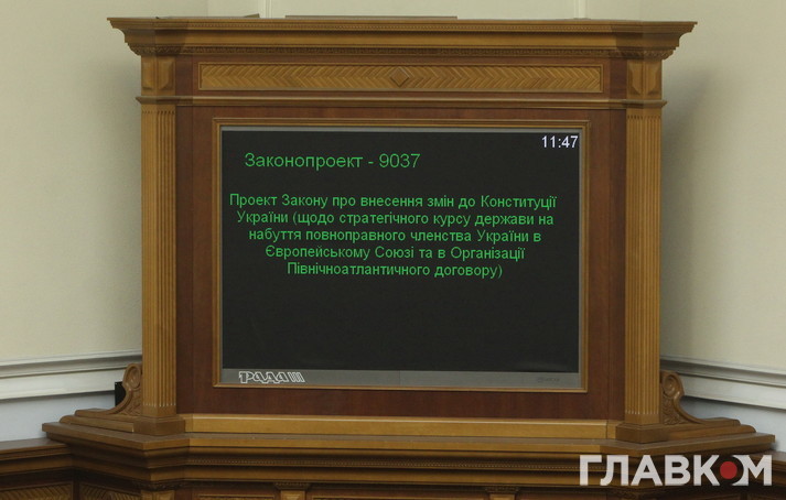 Сьогодні багато хто підніме келихи за історичну подію – Верховна Рада 334 голосами проголосувала за незворотність курсу до НАТО та Європейського союзу. Законопроект №9037 вносить зміни до преамбули Конституції, трьох статей та перехідних положень. До Основного закону вносяться такі поняття як «європейська ідентичність Українського народу», «незворотність європейського та євроатлантичного курсу України», «реалізація стратегічного курсу держави на набуття повноправного членства України в Європейському союзі та в Організації Північноатлантичного договору». Гарантом реалізації цього курсу названий президент, а всі гілки влади мають працювати в цьому напрямі.