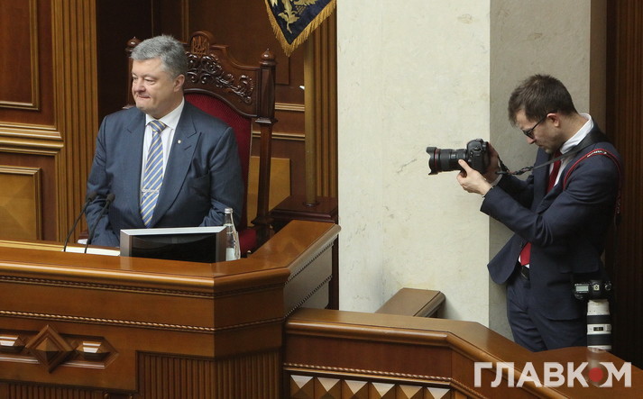 Порошенко, який не міг такого дня не з’явитись в парламенті, вже твердо знав, що необхідні 300+ голосів в залі є. Його власна не надто дисциплінована фракція була шалено мобілізованою. Цікаво, що місце поруч з Порошенком зайняв нечастий зараз у парламенті гість Арсеній Яценюк. У своїй промові Петро Олексійович виявився аж надто лаконічним. Привітавши свого представника в парламенті Ірину Луценко з днем народження, що збігся з таким історичним днем, президент навів приклад Македонії. Цьому потенційному члену НАТО навіть довелось змінити назву держави задля вступу до Альянсу, розбивши при цьому підступи Росії.