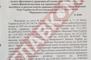 Тепер про згаданий аудит Рахункової палати, який чомусь потрапив під сукно.