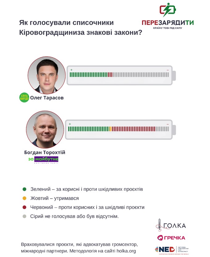 «Голка» разом з іншими громадськими організаціями склала перелік знакових для країни законодавчих ініціатив, які мали корупційні ризики, антиконституційні норми чи навпаки були корисними для захисту державності у новому інструменті «Перезарядити країну тобі під силу».