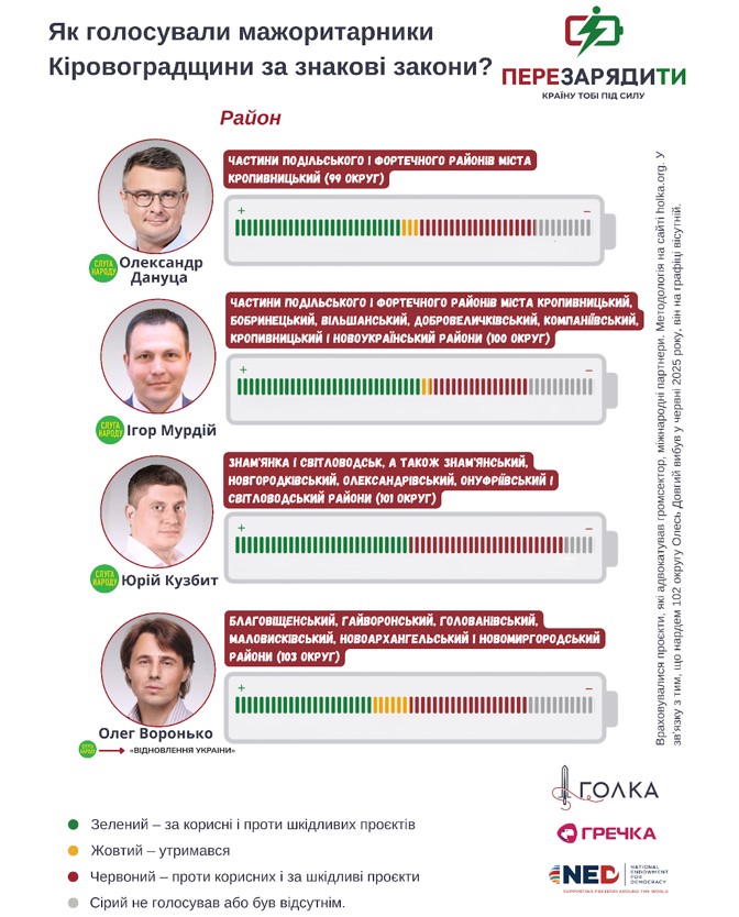 Загалом з-поміж усіх народних депутатів Кіровоградщини лише двоє мажоритарників підтримали деколонізацію – Олег Воронько і Юрій Кузбит. Списочники Тарасов і Торохтій теж голосували «за».