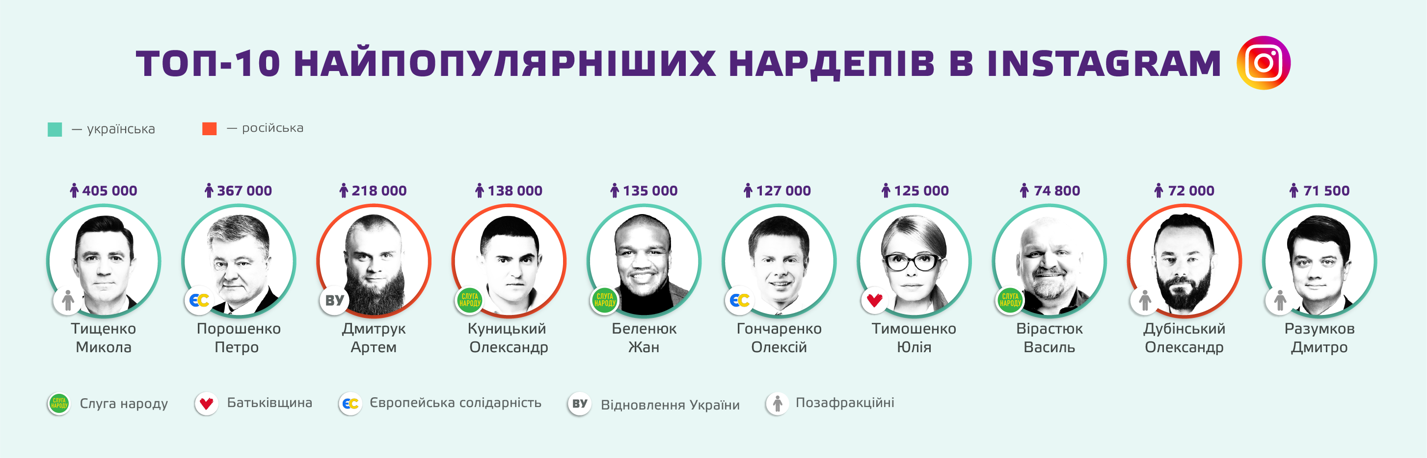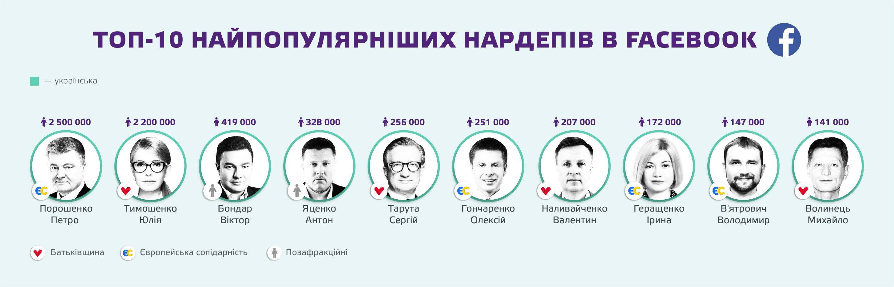 Цікаво, що лідери партій не завжди мають більшу кількість підписників у соцмережах, ніж рядові нардепи. Проте виключенням є лідерка «Батьківщини».