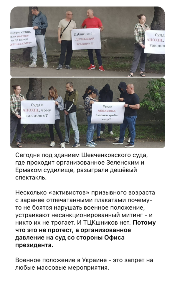 Загалом дописи Дубінського орієнтовані на теми «бусифікації», «авторитаризму» влади, захисту Російської церкви. Найчастіше такі наративи поширює й мажоритарник із Дніпра від «Слуги народу» Максим Бужанський, який має схожі пости на своєму каналі.