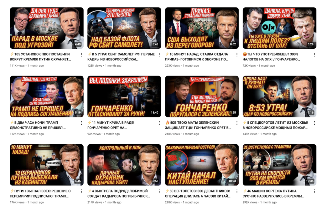 Серед російськомовних YouTube-блогерів також значиться нардеп від «слуг» Євгеній Брагар, Юрій Бойко (ПЗМЖ) та ще один мажоритарник-утікач Артем Дмитрук (колишній слуга, а наразі член депутатської групи «Відновлення України»).