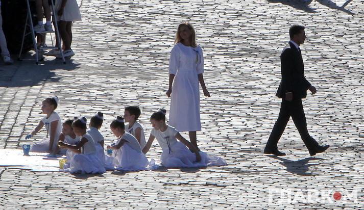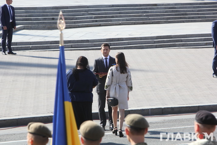 На Майдані президентську пару очікували високі гості, серед яких, щоправда, не виявилося ні спікера Ради Андрія Парубія, ні прем’єра Володимира Гройсмана, проте були присутні кілька членів уряду, що йде, – Іванна Клімпуш-Цинцадзе, Уляна Супрун, Володимир Омелян, Геннадій Зубко, Ігор Жданов, Євген Ніщук. Серед експрезидентів не було лише Віктора Януковича, поява якого, безумовно, стала б головною подією свята, і Петра Порошенка, який в цей час зі своєю свитою молився в Софіївському соборі. Утім Порошенко згодом з’явився на закритому прийомі Зеленського в Маріїнці.