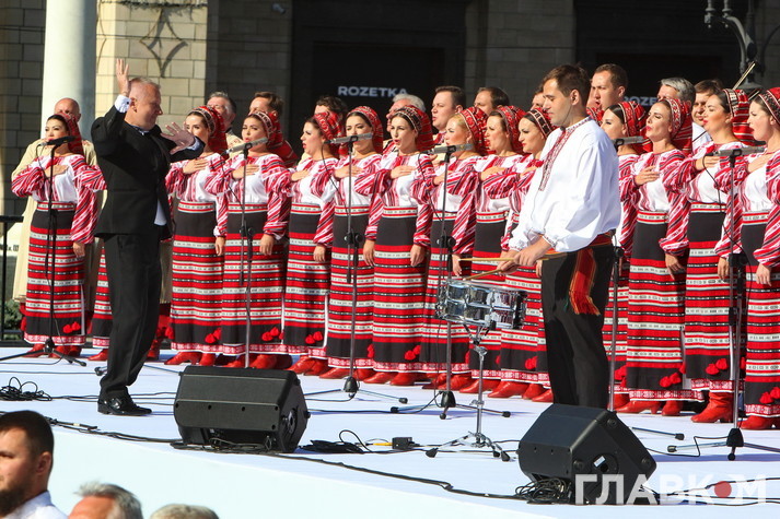Бадоєв відпрацював своє різноманітне виконання гімну, яке, власне, і мало всіх вразити. «Ще не вмерла України» виконала і Тіна Кароль, яка в сяючій білій сукні надривала голос на даху консерваторії, і представниця України на дитячому Євробаченні Дарія Красновецька в супроводі оркестрів силовиків, і відомий композитор Мирослав Скорик, який зіграв гімн на пофарбованому в кольори державного прапору піаніно разом з півтора десятками інших виконавців, у тому числі найменших.