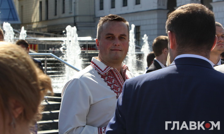 Представники партії «Слуга народу» на чолі з її лідером Дмитром Разумковим сконцентрувалися на протилежному боці Хрещатику. Кореспондент «Главкома» стояв у черзі перед металошукачами за молодиком, який скромно сказав, що він новий депутат, і був суворо відправлений охоронцями на іншу рамку.
