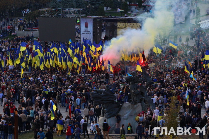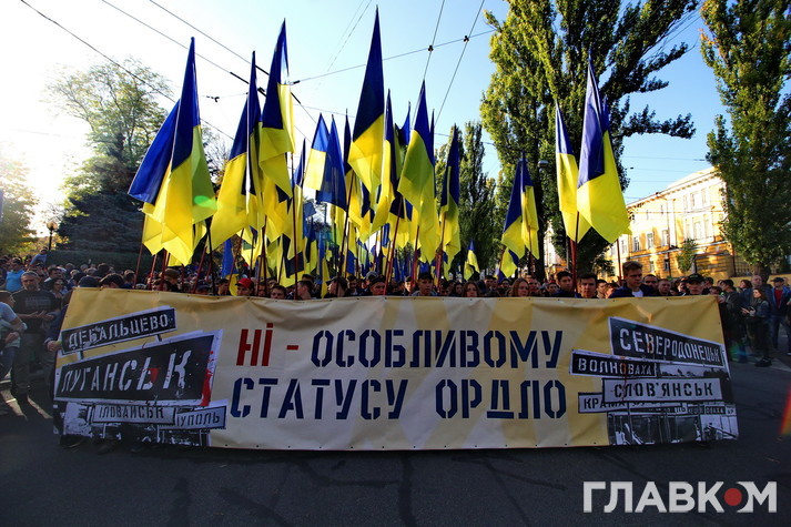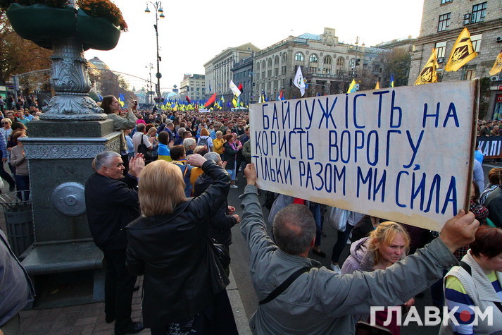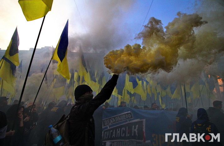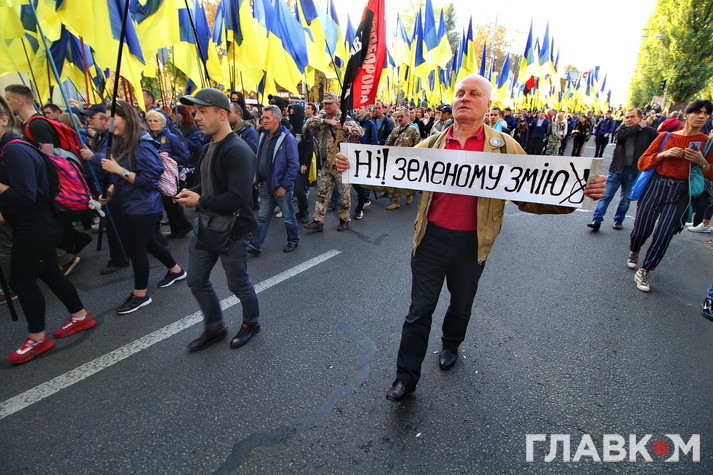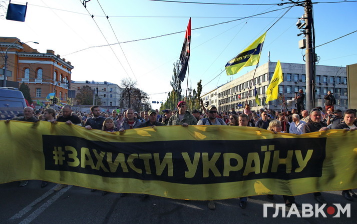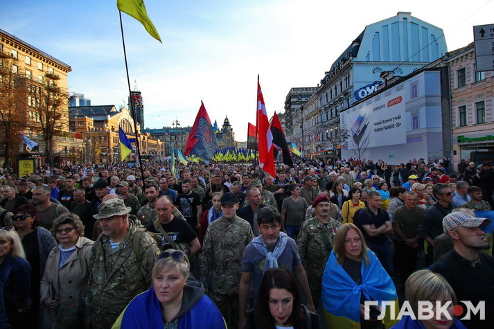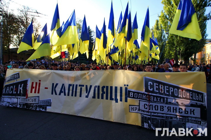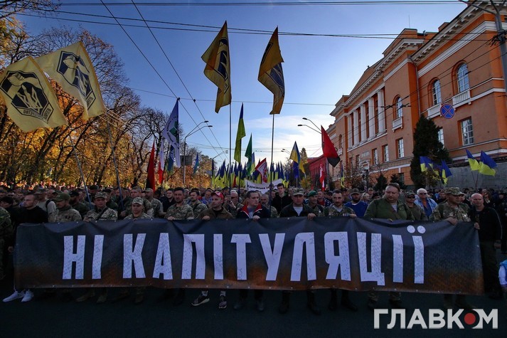 Чудова погода, свято і вихідний. Покрова та День захисника України дозволили націоналістам зібрати під свої знамена кілька десятків тисяч прихильників. Переважна більшість людей, які вийшли у центр столиці, - звичайні українці. Більшість з них не розуміли, чому найбільш популярні праві рухи у цей день йшли різними колонами. Напередодні до КМДА надійшло п’ять заявок на проведення акції до Дня захисника України, найчисельнішими виявились марш УПА, організований партією «Свобода» Олега Тягнибока, і марш «Ні Капітуляції», зібраний «Національним корпусом» Андрія Білецького.