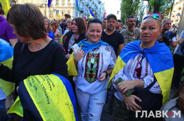 Наталя з Харкова раділа тому, що багато людей вийшло на акцію. Приїхала організовано групою. Щоправда не зізнається, хто винайняв автобуси. Не бачить великої проблеми в тому, що люди у цей день під різними прапорами і в різних колонах, хоча і не вважає це плюсом. «Якщо по-інакшому не можуть, то нехай хоч так. Нехай побачать (насамперед влада), що усі люди за нашу єдину, цілісну, незалежну Україну. У нас перший ворог – це Росія. З іншими самі розберемося», - каже Наталя.