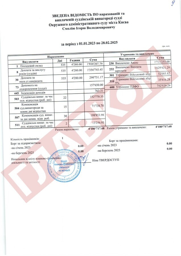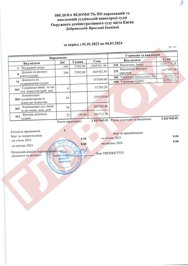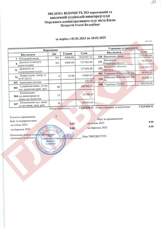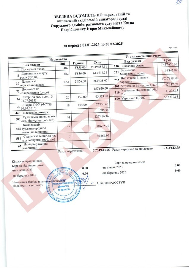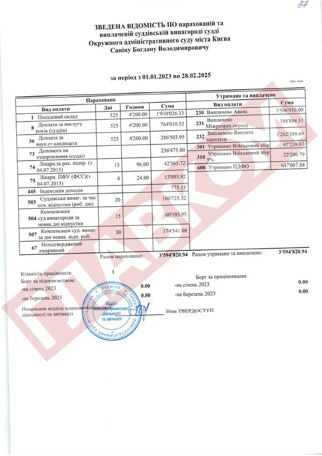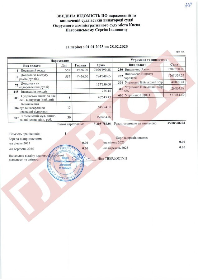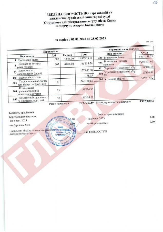 Справжнім рекордсменом за рівнем доходів із числа непрацюючих суддів ОАСК став Руслан Арсірій. На кінець лютого 2025 року сума виплаченої йому суддівської винагороди склала 4,66 млн грн! До слова, суддя Арсірій поки офіційно не звільнений.