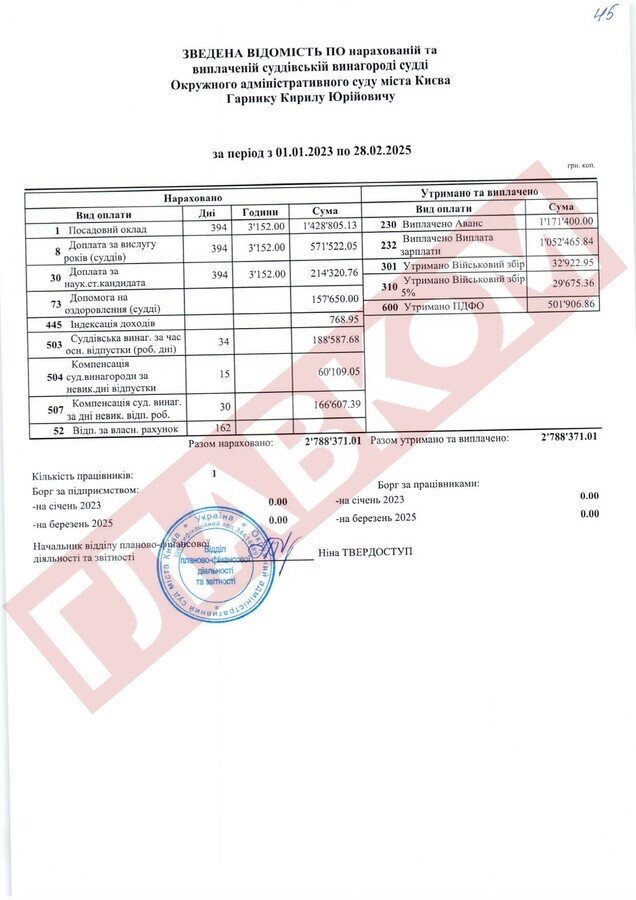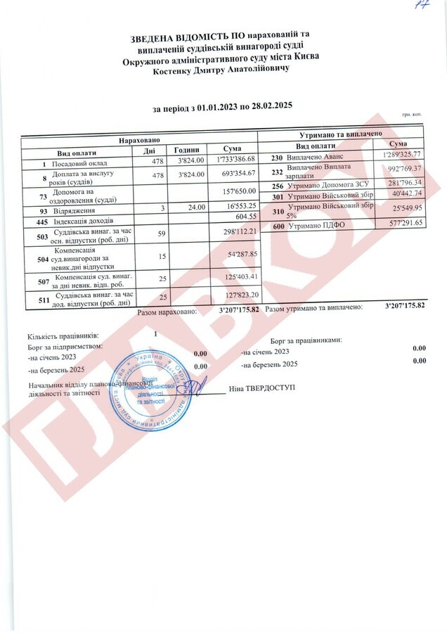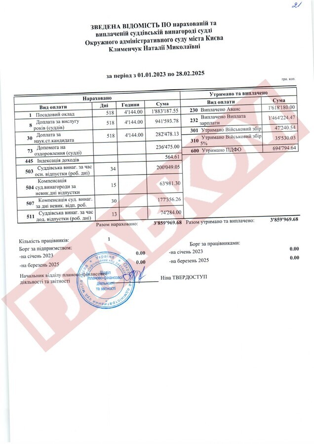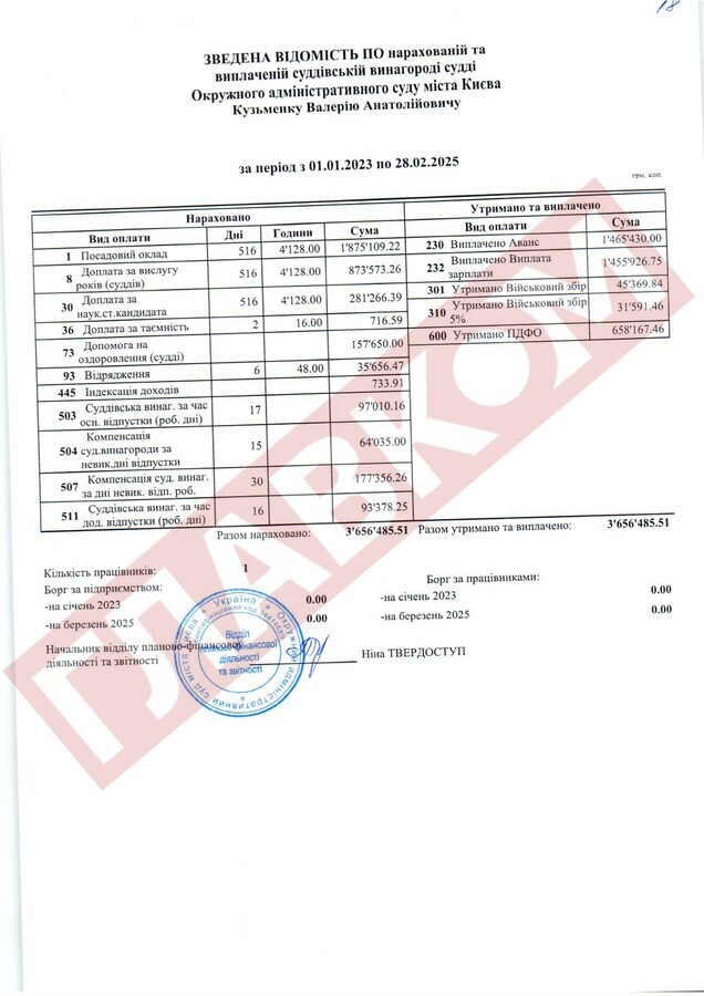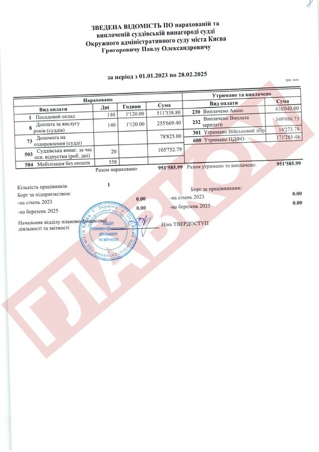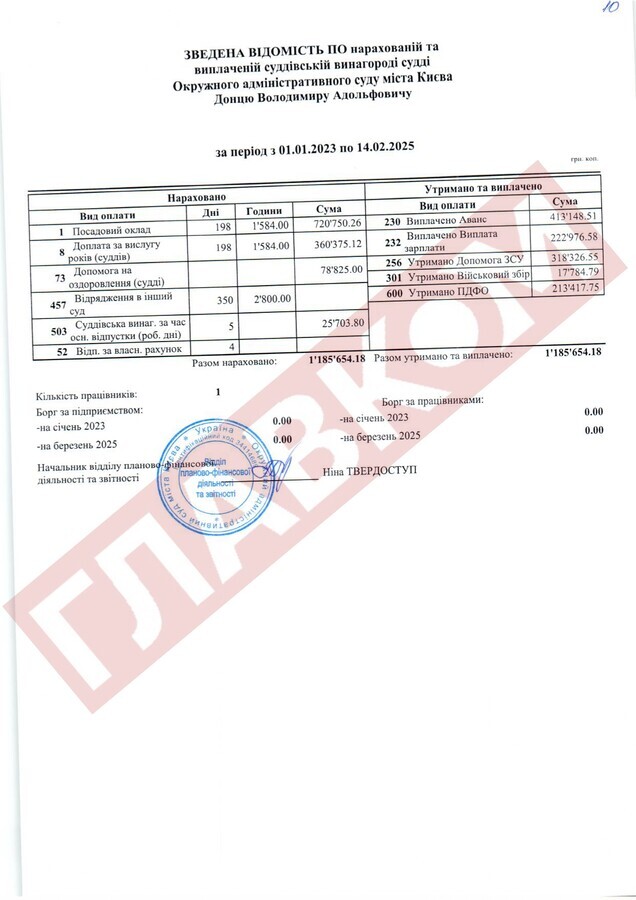 Історія скандально відомого Окружного адміністративного суду Києва (ОАСК), ліквідованого наприкінці 2022 року, не завершилася. У розпорядження «Главкома» потрапила бухгалтерська звітність цього суду, що фіксує виплати пів сотні суддям цієї установи за 2023 рік, 2024-й і два місяці 2025 року. Парадокс у тому, що ОАСК було ліквідовано рішенням Верховної Ради, і він автоматично перестав розглядати судові справи. Тобто судді мали б перестати виконувати свої обов’язки, однак це жодним чином не позначилося на їхніх доходах. Далі «Главком» розказує історію про те, як нічого не робити, і 3-4 млн заробити...