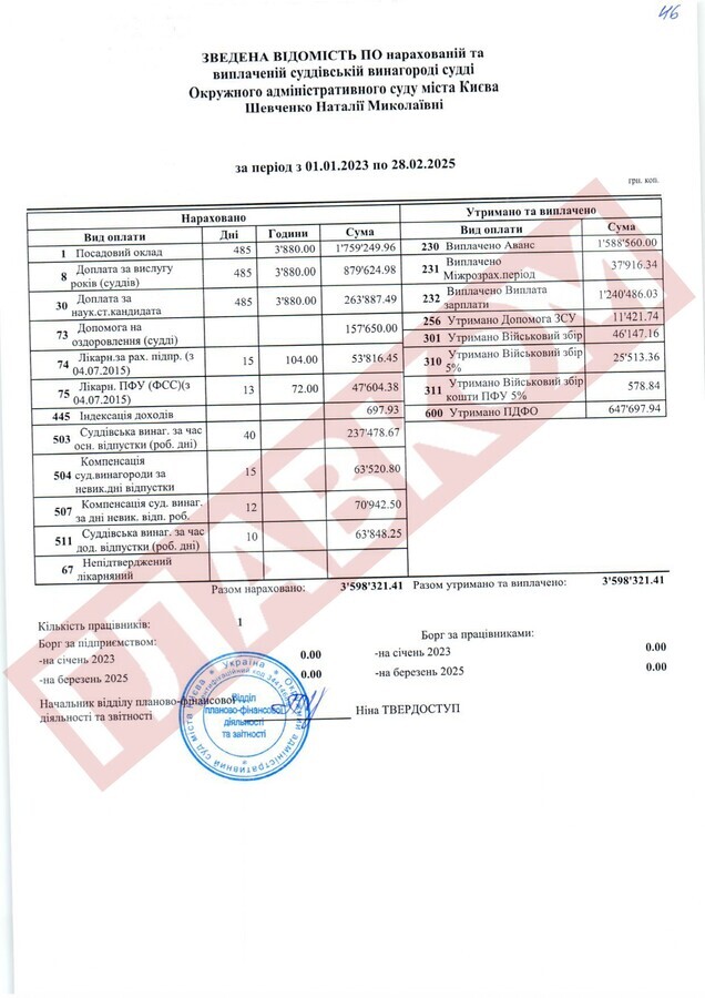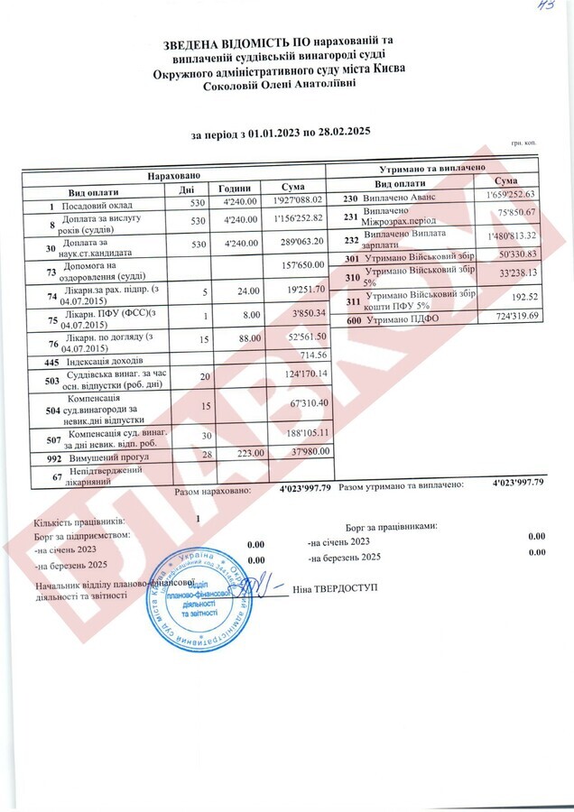Уже колишня суддя Тетяна Шейко (звільнена у лютому 2025 року за результатами кваліфікаційного оцінювання суддів і визнана такою, що не відповідає займаній посаді) «напрацювала» в ліквідованому ОАСК на 3,79 млн грн.
