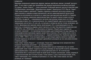 Гіпотезу? Але ж гіпотеза – це припущення, а Кірпічніков констатує реальний факт відкриття напису «Коваль Людота», цитуємо текст монографії: «Напис відкрився у верхній третині долу леза, він двосторонній і наведений інкрустованим у метал дротом».