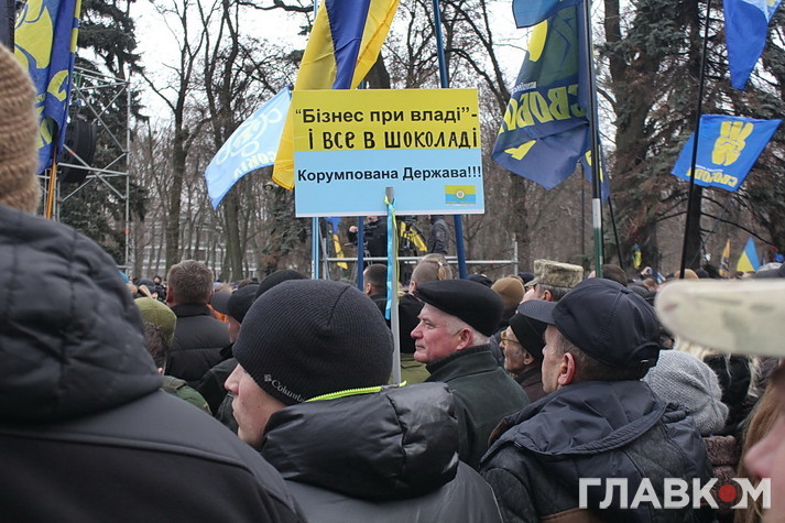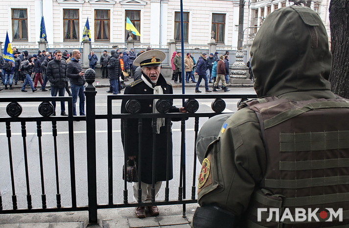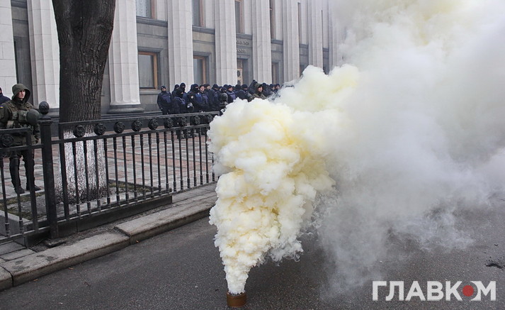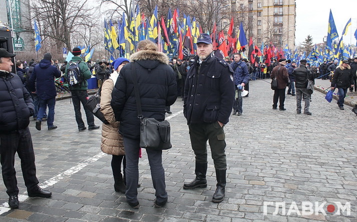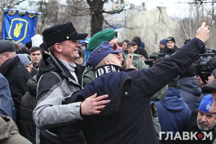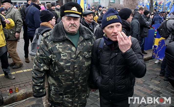 Поки лідери націоналістів перебували у Раді і ще не повернулися до мітингувальників, у натовпі запалали фаєри, зібрання продовжило слухати інших виступаючих. «100 років тому в Петербурзі відбулася революція, внаслідок якої постала Українська держава», – із екскурсом в історію виступив президент історичного клубу «Холодний Яр» Роман Коваль. Щоправда, потім додав, що це сталося внаслідок слабкості Росії у той історичний період. Своєю чергою інший запрошений, екс-суддя Конституційного суду Віктор Шишкін, запропонував повернутися до реалій сьогодення, висловивши схвалення об’єднанню правих сил. «Був я присутнім у з’їзді, який заснував «Національний корпус». Був і на з’їзді до 25-річчя «Свободи». Бачив і гасла одні і ті ж, і очі одні і ті ж, і обличчя наче також однакові, але вони не разом», – сказав відомий юрист, додавши, що тепер тішиться, що націоналісти об’єдналися, бо сам не хоче об’єднуватися з цим парламентом, із цими суддями, із цією державною системою, яка діє зараз.