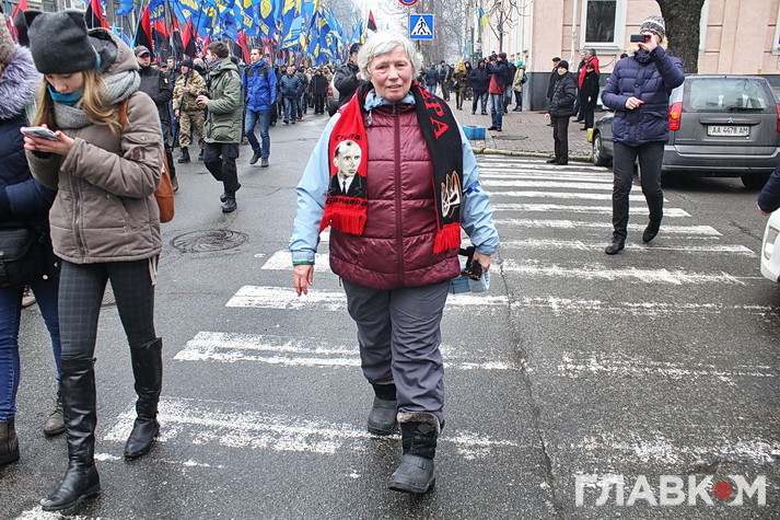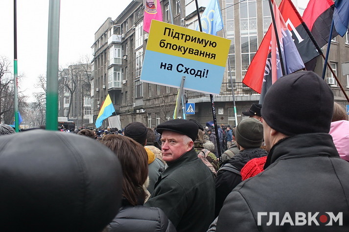 Колона націоналістів «Правого сектора», «Свободи» і Національного корпусу близько 10:15 ранку сформувалася біля входу до станції метро «Хрещатик», що на Інститутській. Проходячи повз вулицю Банкову, організатори вирішили передати президентові величезну цукерку «вартістю в тисячу українських життів» і квиток на поїзд до Москви. Тут же, на перехресті Інститутської і Банкової, варенична «Катюша» від гріха подалі зняла свою нав’язливу вивіску, що могла у когось викликати асоціації з російськими піснями чи озброєнням.