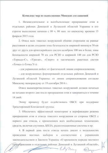 Третя зустріч «нормандської четвірки» у складі глав держав відбулася в Мінську 11-12 лютого 2015-го. Переговори тривали близько 17 годин (це була найтриваліша зустріч «четвірки»), їхнім результатом стало затвердження угоди «Мінськ-2» (офіційна назва Комплекс заходів щодо виконання Мінського протоколу), яка передбачала припинення вогню з 15 лютого 2015 року, відведення важкого озброєння від лінії зіткнення, обмін полоненими «всіх на всіх».