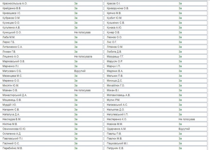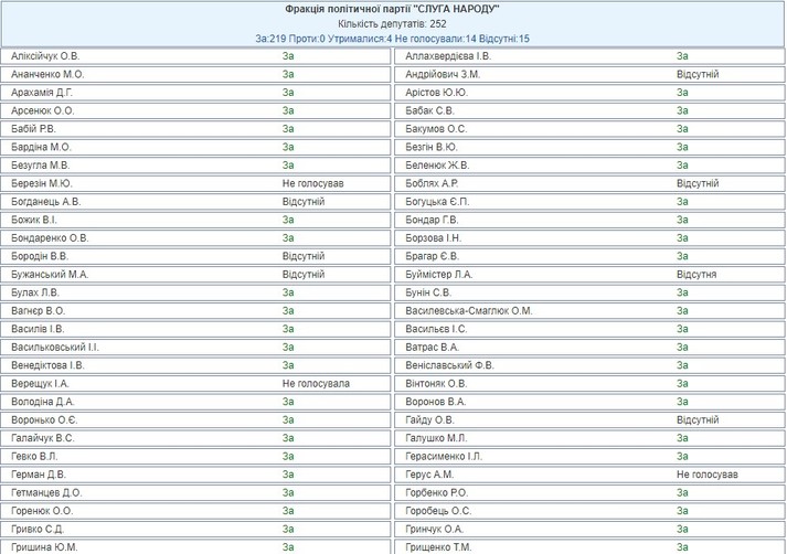 Список «слуг народу», які не голосували за президентський законопроект:
