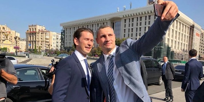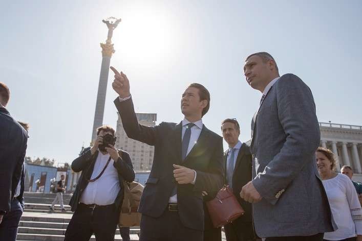 Перед переговорами з українським президентом Курц встиг прогулятись Хрещатиком з мером Києва Віталієм Кличком, побувати на алеї Небесної сотні, вшанувати пам’ять загиблих під час Революції Гідності в 2014 році.