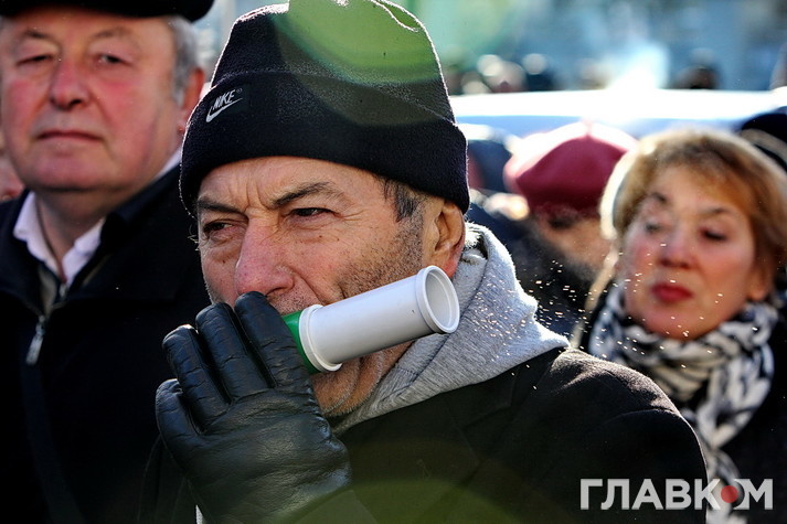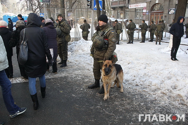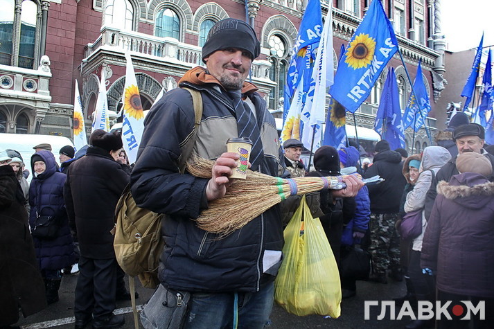Люди із прапорами цих політсил виголошували вимоги звільнити Гонтареву, скасувати «непід’ємні» тарифи та повернути… «долар по 8». Ці протестувальники фактично перебували у великій клітці. Щоб дістатися НБУ, треба було пройти через загорожі, металошукачі та показати правоохоронцям вміст сумки. У деяких учасників вуличних акцій, як пізніше повідомили в поліції, було вилучено кілька ножів та травматичну зброю.
