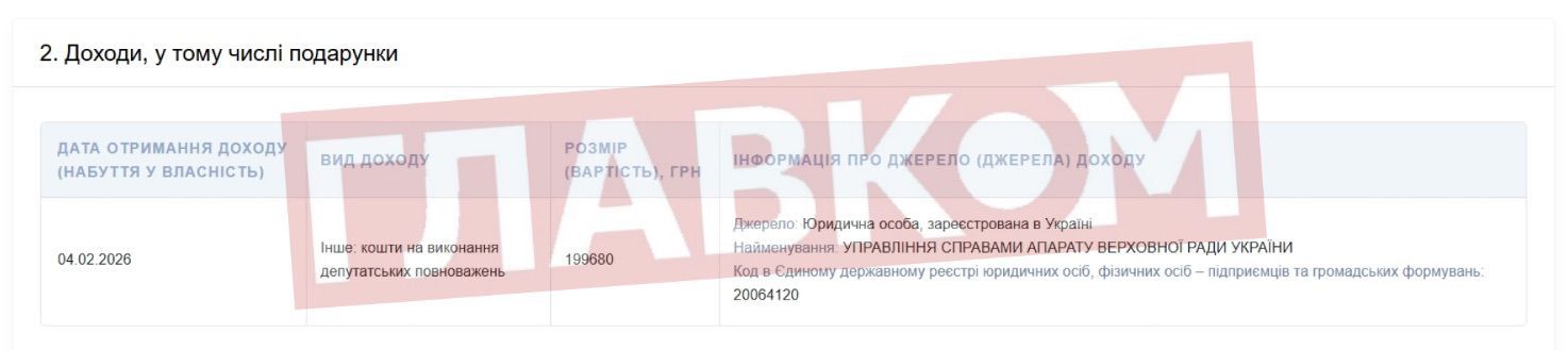 У 2026 році народні обранці почали отримувати утричі більші виплати, призначені для виконання депутатських повноважень. Як дізнався «Главком», ідеться про щомісячні виплати у розмірі близько 199,6 тис. грн, які вже парламентарі відображають у своїх деклараціях.