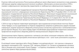 Опис російського проєкту «Голос правди» з сайту «Фонд президентських проєктів РФ»
