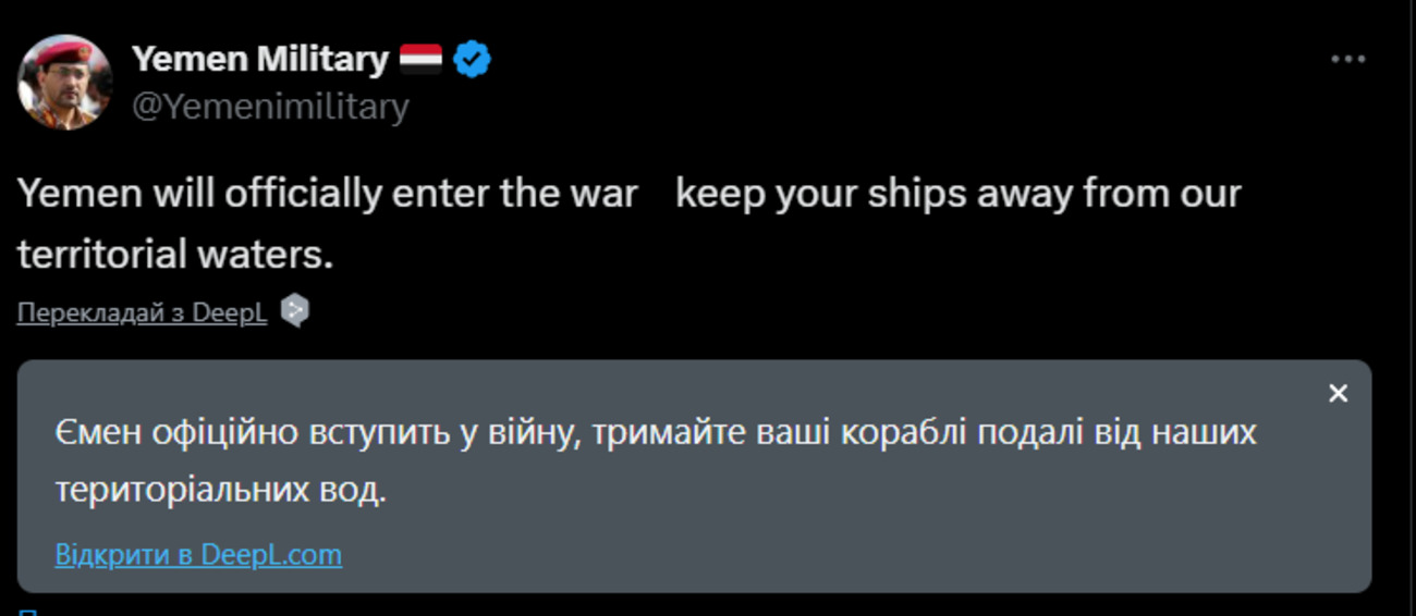 Схоже, з усіх союзників Ірану лише Ємен налаштований рішуче: хусити заявили про свою готовність вступити у війну на Близькому Сході.