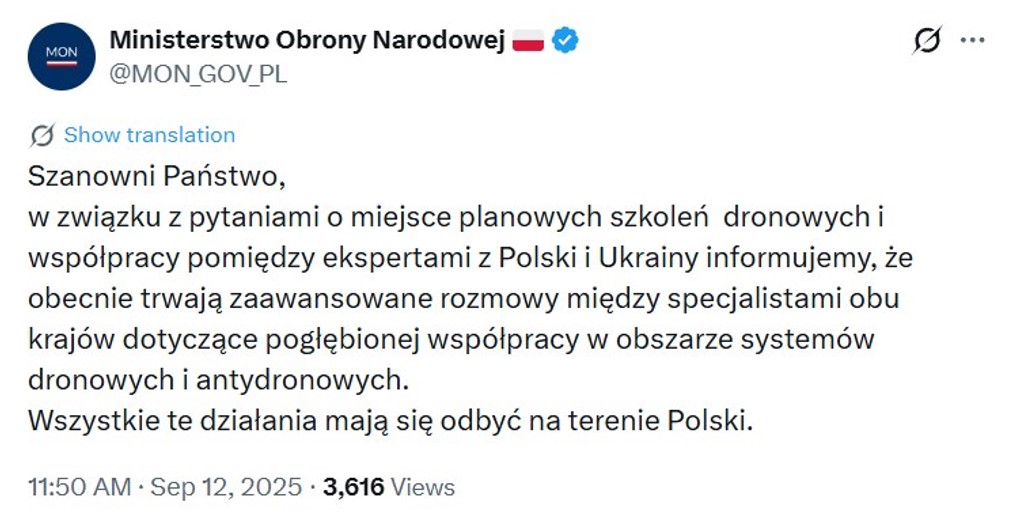 Польща врешті звернулася з проханням до України навчити ї збивати російські дрони. Україна, звісно, не відмовила. За добу з’явилася заява польського МЗС про те, що навчатися її військові будуть на території Польщі, бо в Україні небезпечно.