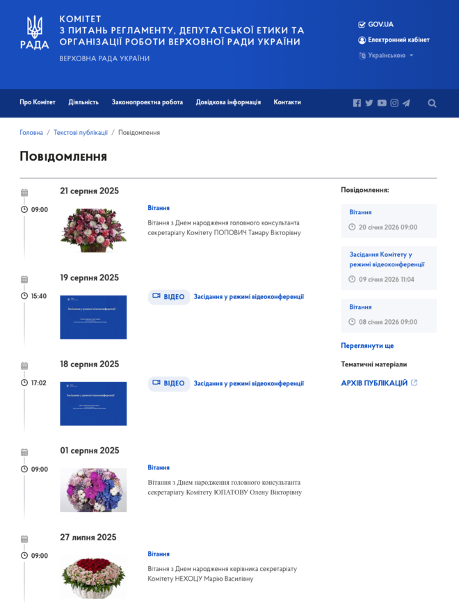 Не проводив трансляцій засідань і економічний комітет, хоча його співробітники завели YouTube-канал на початку 2025 року.