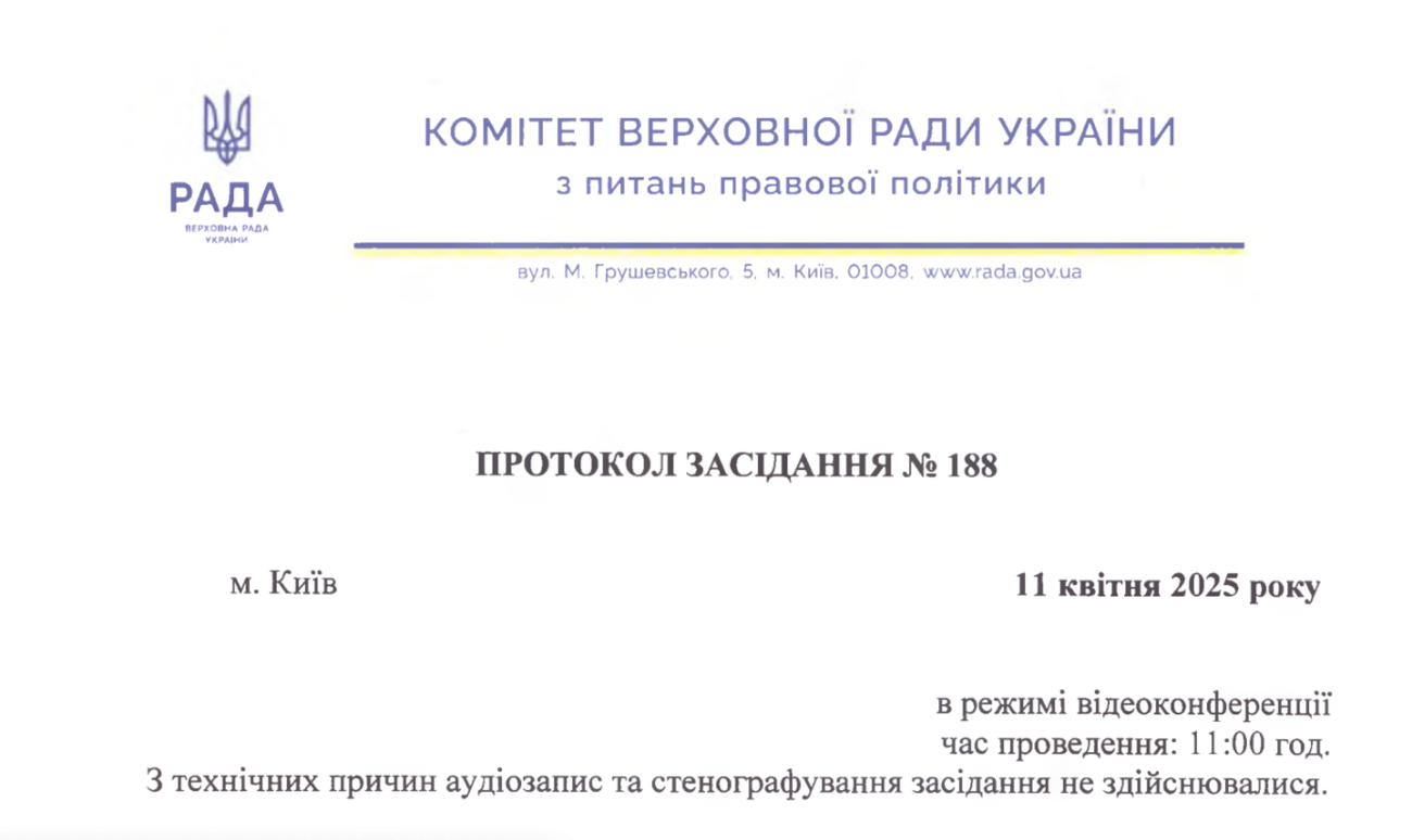 Щодо відео, то правоохоронний комітет від початку повномасштабного вторгнення опублікував запис лише одного засідання – за 29 листопада 2024 року, коли обирали членів Кваліфікаційно-дисциплінарної комісії прокурорів (КДКП).