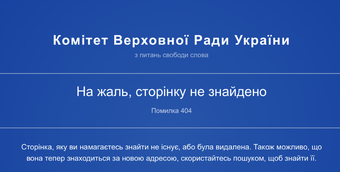 Натомість Комітет з питань свободи слова не публікує інформацію про ухвалені рішення ні на сайті, ні в соцмережах, а у календарі з протоколами та стенограмами замість деяких документів відкривається сторінка помилки.