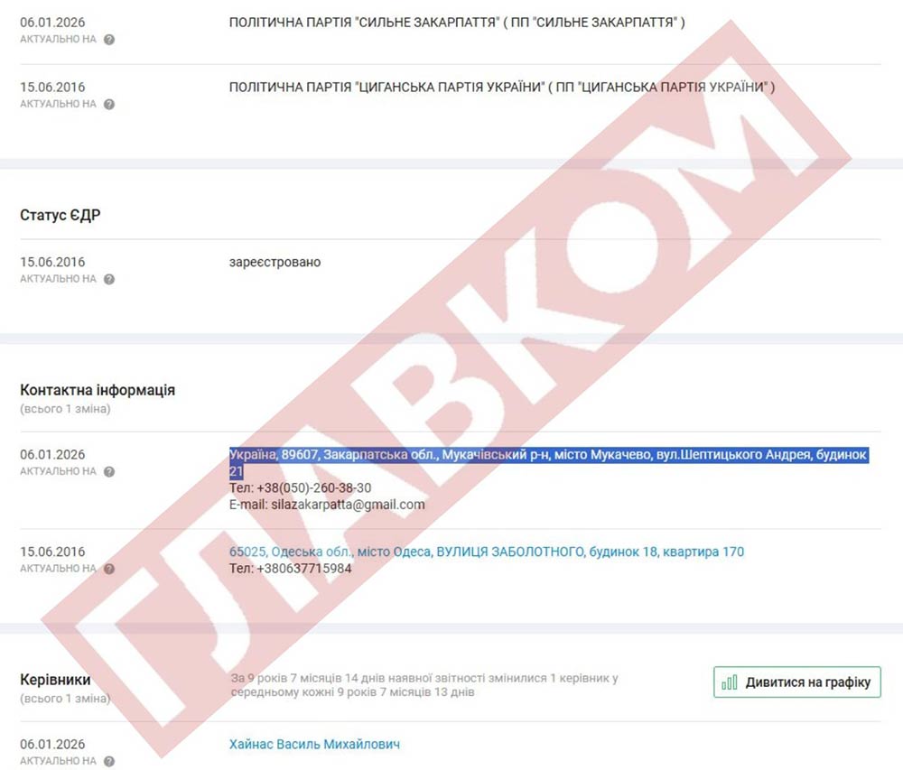 6 січня 2026 року на Заході Україні з’явилася нова політична сила «Сильне Закарпаття». Її очолив директор Новодавидківської загальноосвітньої школи (Мукачівський район) Василь Хайнас. До перейменування «Сильне Закарпаття» називалося Циганською партією України і мало одеську прописку.