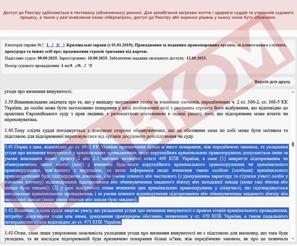 І, по-четверте, 4 вересня 2025 року Вищий антикорупційний суд по-тихому випустив зі столичного СІЗО ексголову МСЕК Хмельниччини. Щоправда, пересування Тетяни Крупи суттєво обмежили. Зокрема, суд обрав їй новий запобіжний захід у вигляді застави на суму 20 млн грн. Також підозрюваній заборонено: відлучатися з Хмельницького без дозволу слідчого, прокурора або суду; спілкуватися з колишніми працівниками і особами, які зверталися для проведення медико-соціальної експертизи. Окремо вона повинна носити електронний браслет і здати закордонний паспорт. Ці обмеження діють до 4 листопада.