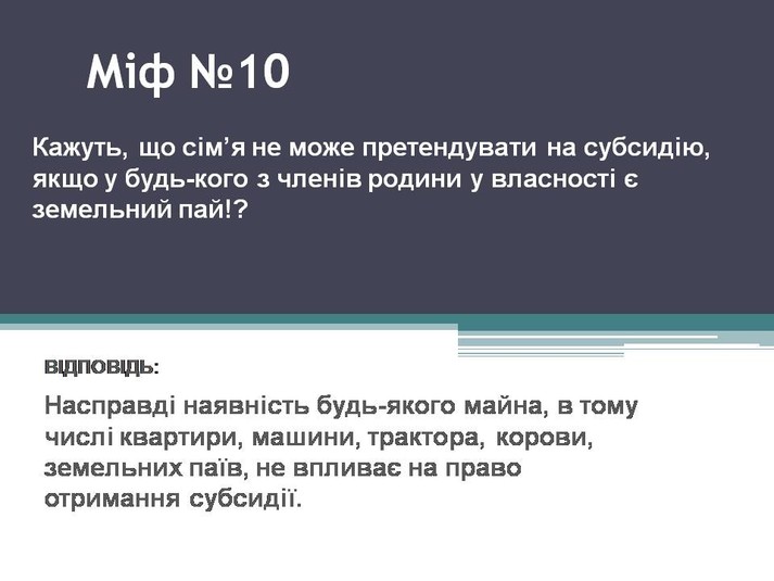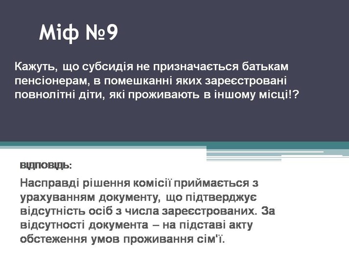 Перш за все, ми б хотіли розвіяти найбезглуздіші міфи про субсидії.