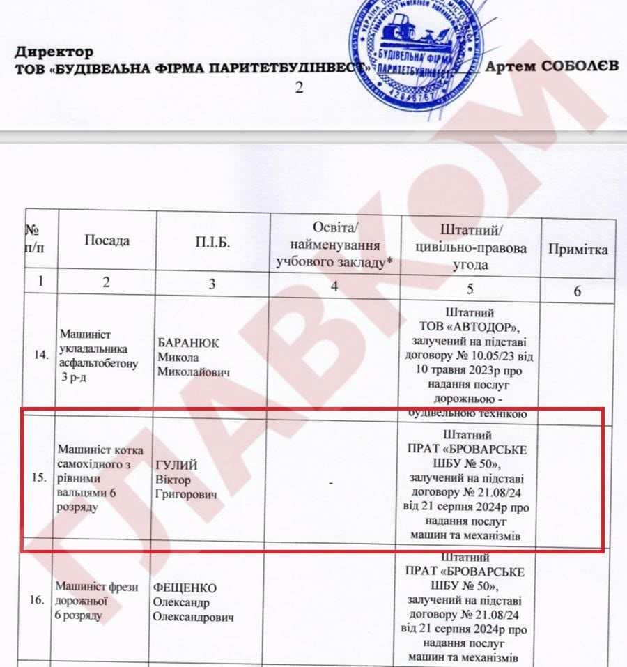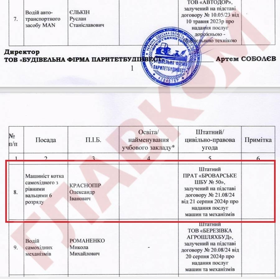 Орендує «Паритетбудінвест» техніку і за межами Одеської області. Наприклад, на Київщині, де базується Броварське шляхово-будівельне управління №50 (ШБУ 50). З цього місця й починається найцікавіше.