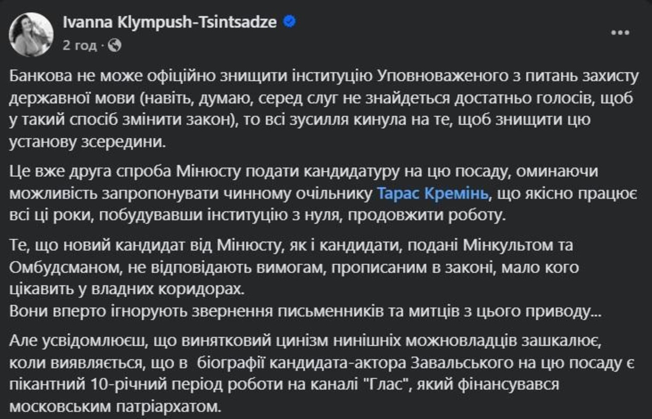- Культурні діячі просять владу перепризначити мовного омбудсмена