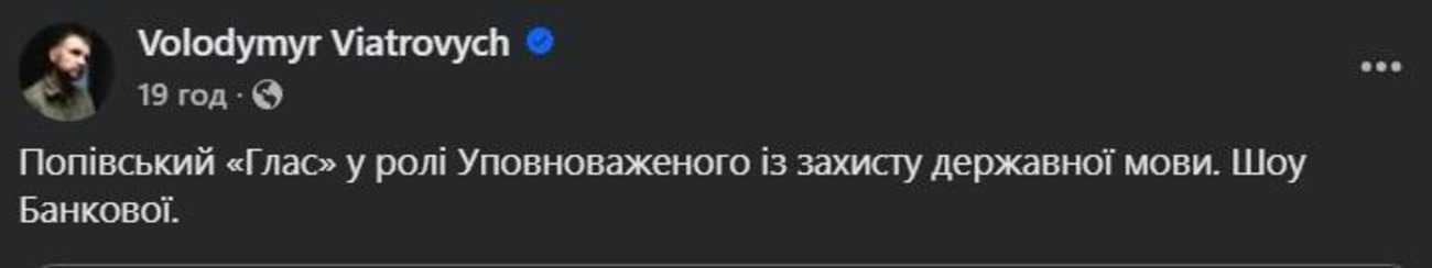 «Замість тиску можна було б: зустрітися з ним, з’ясувати його позицію, пояснити, в чому він помиляється, тобто зробити союзником у мовному питанні, а не ворогом. Бо тепер що? Його покарають – і він стане в опозицію. А разом з ним і мільйони тих, хто його любить і поважає, хто до нього дослухається. Як це допоможе мові?», – розмірковував він далі.