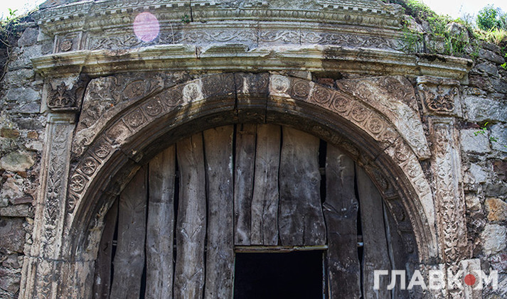 Сліди від вибухів російських бомб й дотепер видно на порталі, що прикрашає вхід до колишньої вірменської церкви.
