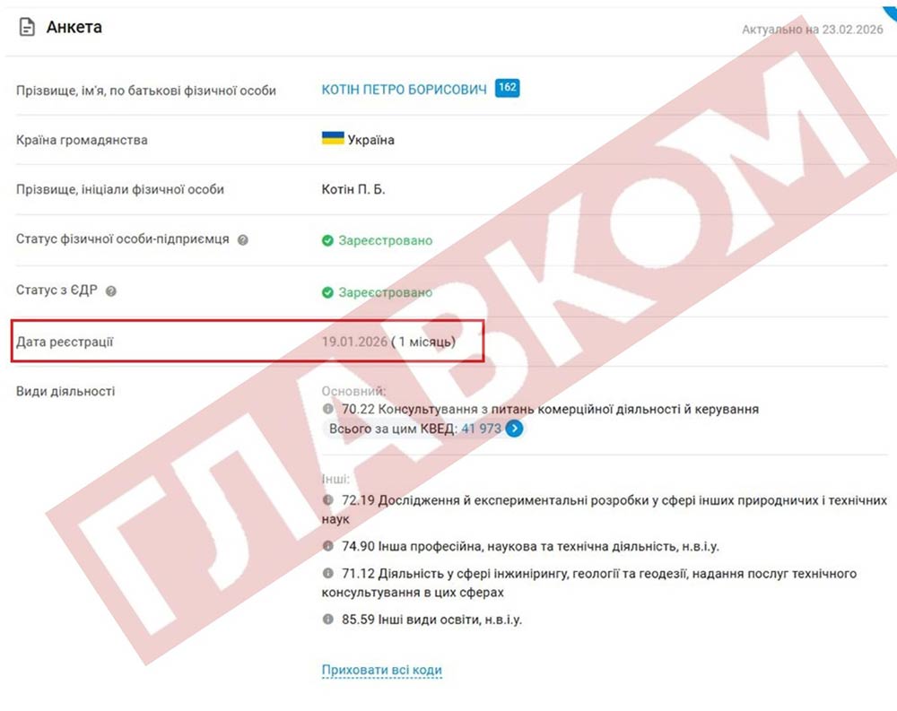 Тим часом «Главком» зафіксував ще один свіжий факт. 19 січня 2026 року екскерівник «Енергоатома» зареєстрував ФОП з основним видом діяльності «Консультування з питань комерційної діяльності й керування».